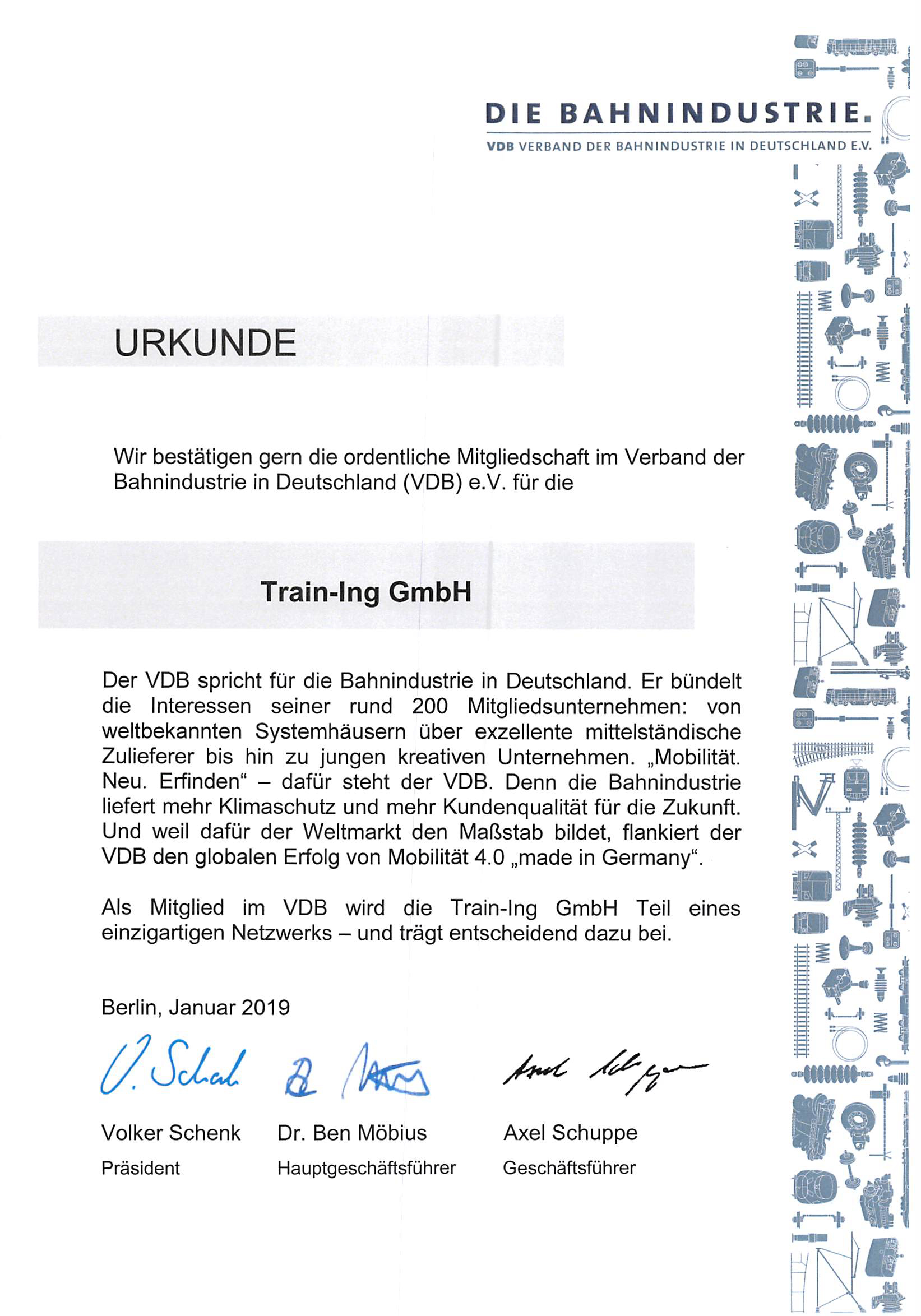 Die Train-Ing GmbH ist Mitglied im Verband der Bahnindustrie in Deutschland e.V.
